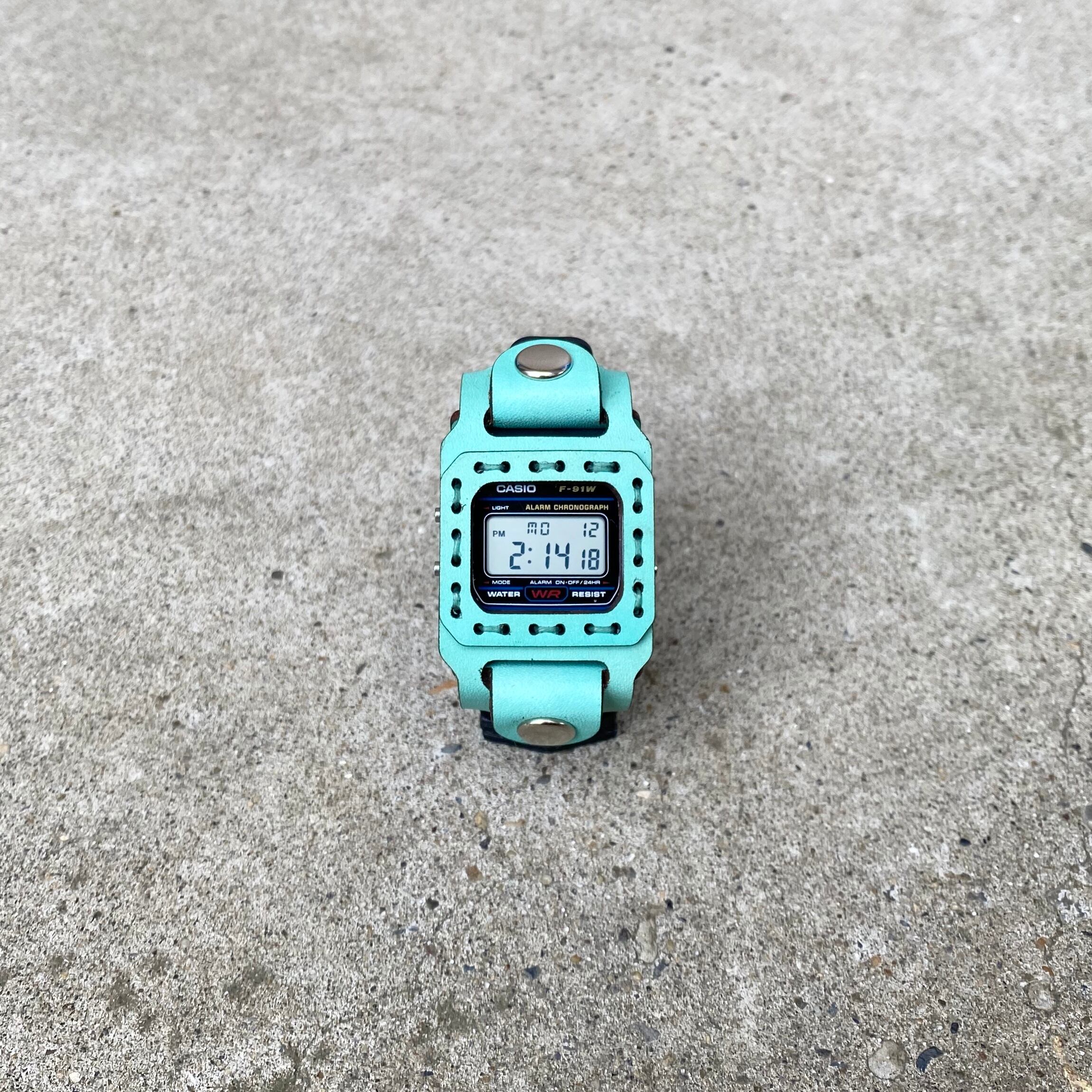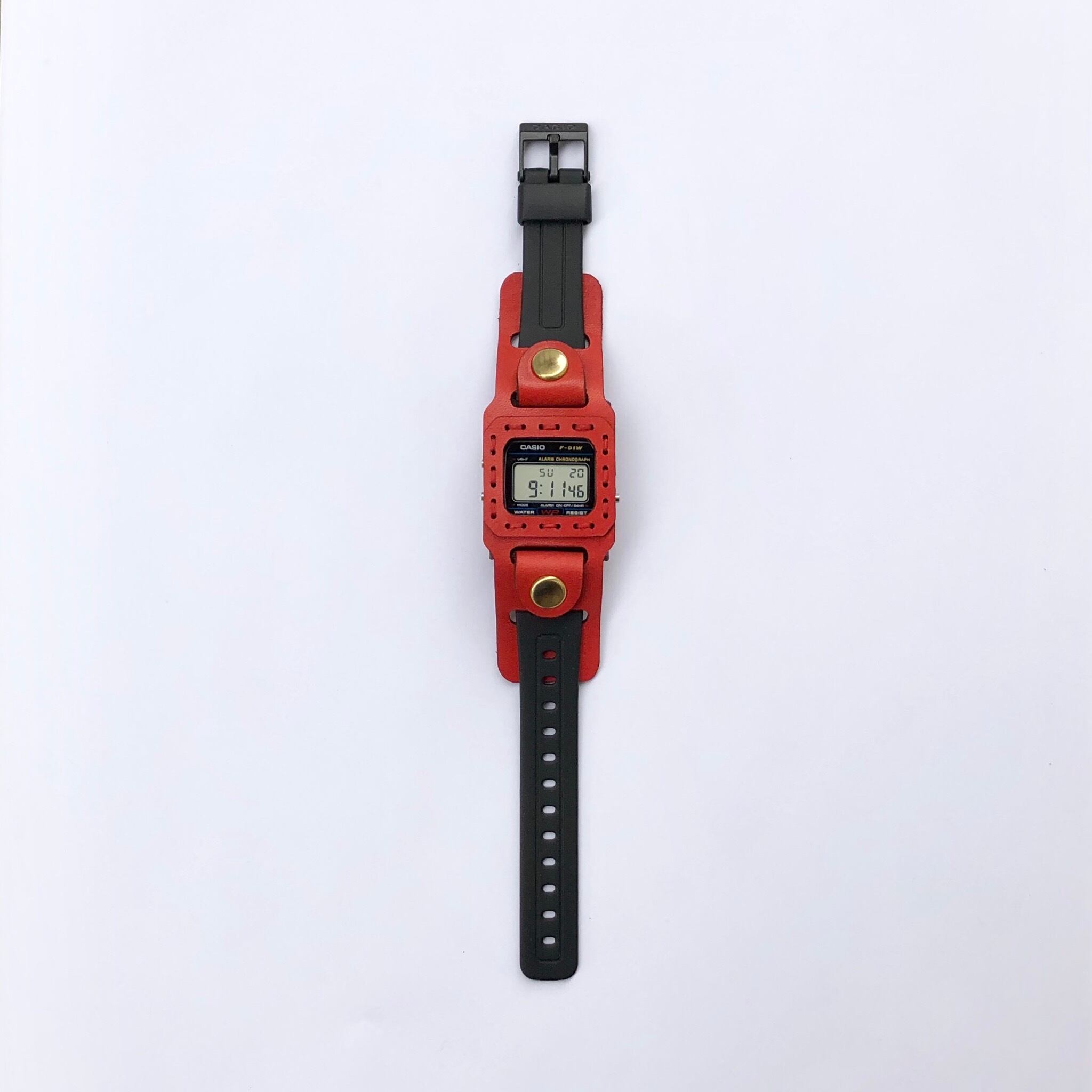 Leather watch cover + F-91